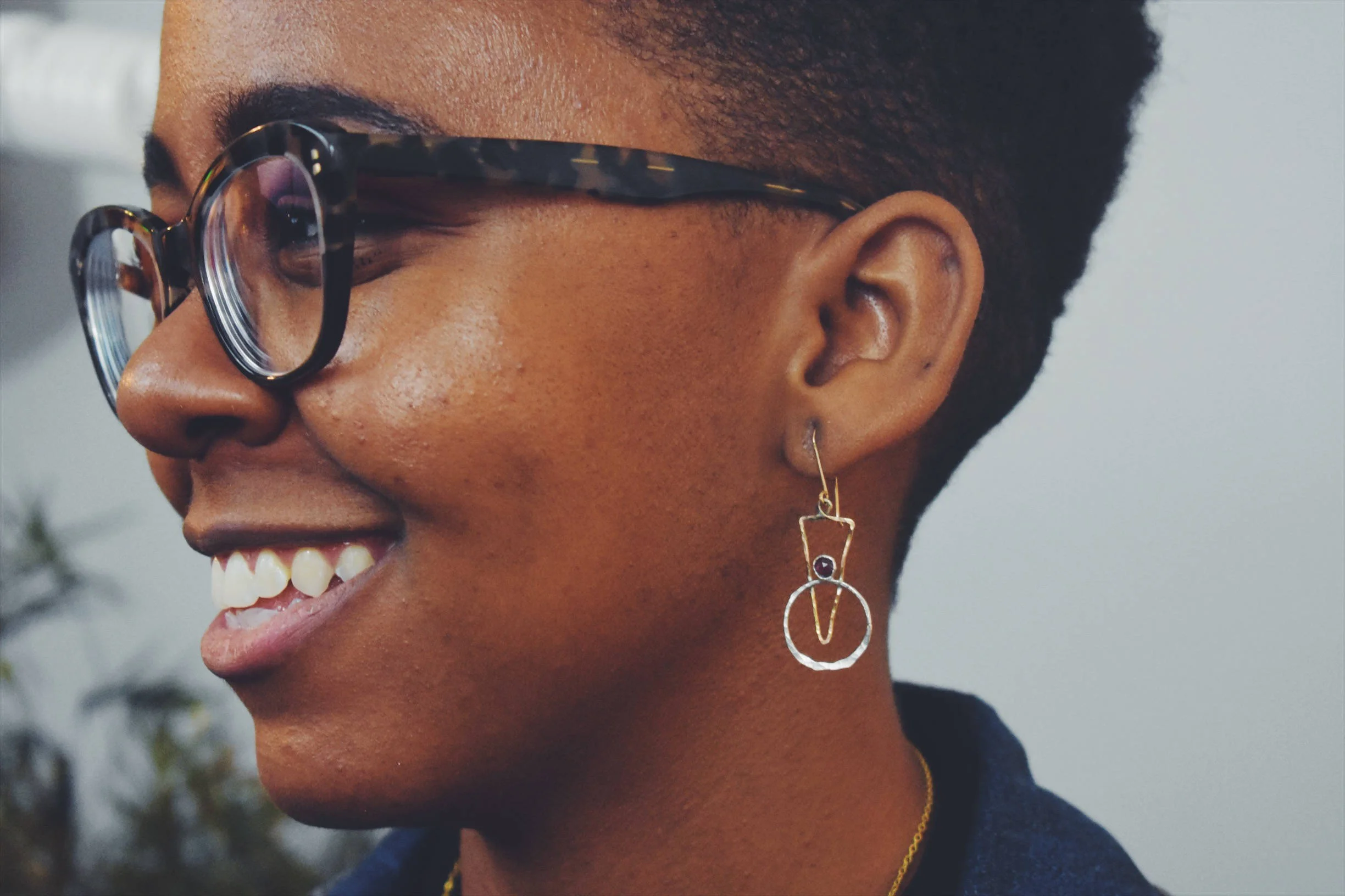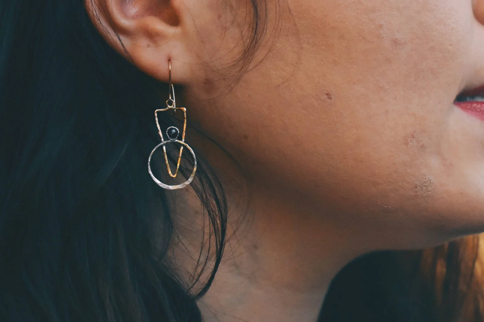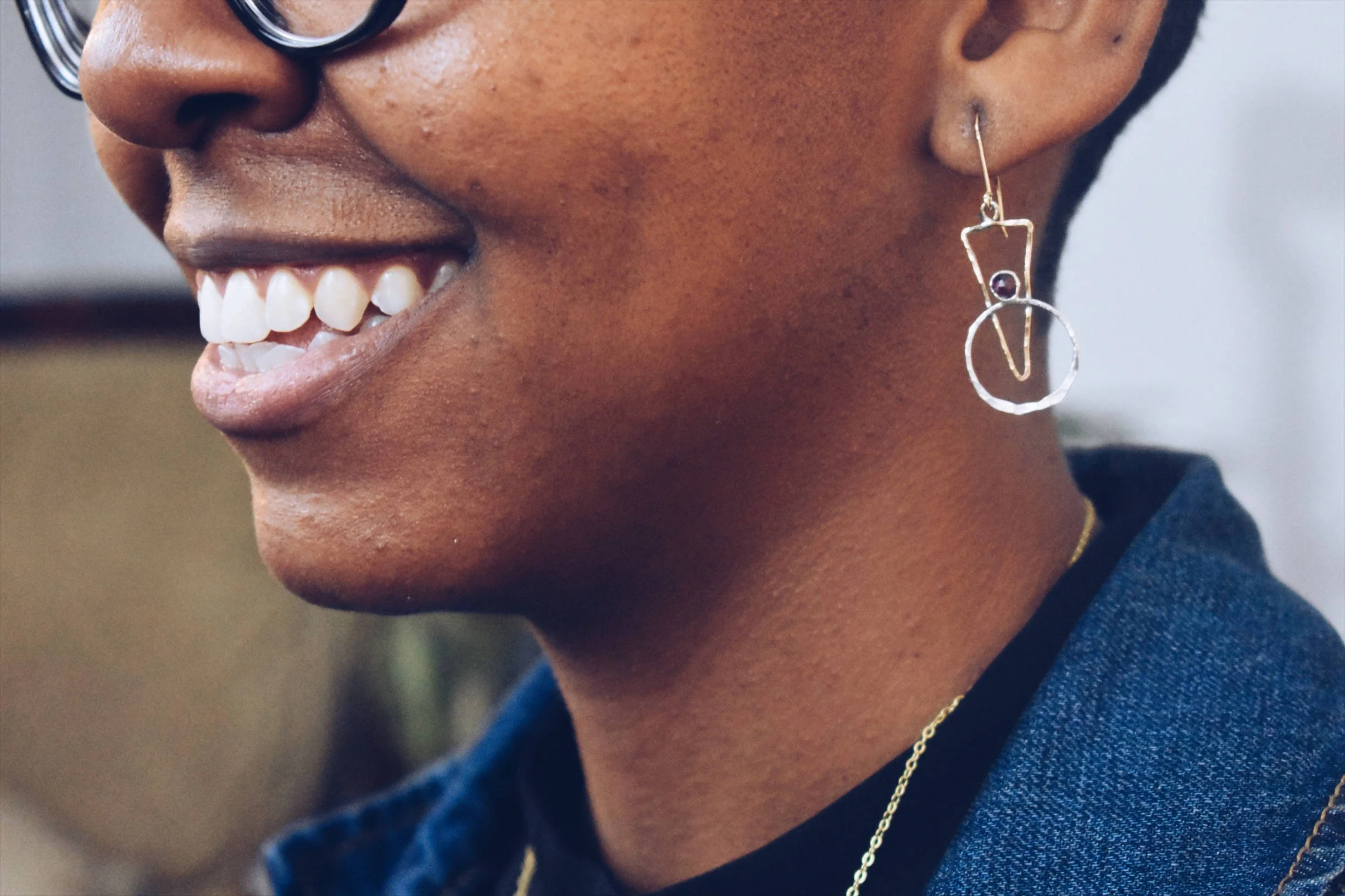 Circle and Spire Geometric Earrings in Sterling Silver, 14k Gold Filled, and Garnet